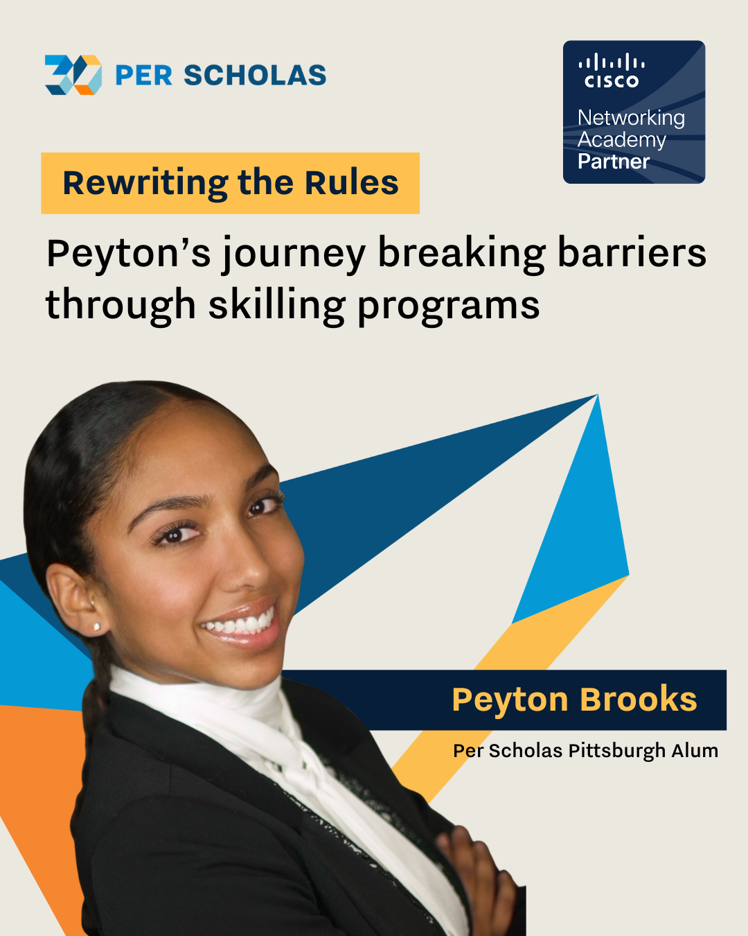 Following graduation with her degree in cybersecurity, Peyton, a hardworking mom, soon found herself at a crossroads-facing a barrier when it came to breaking into her chosen field. Through Per Scholas, in collaboration with the Cisco Networking Academy (NetAcad), she found not only critical technical skills but a supportive community that helped her reignite her personal and professional ambitions.
